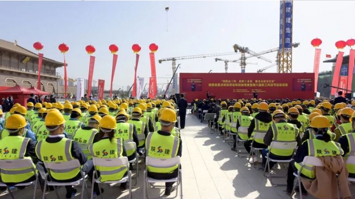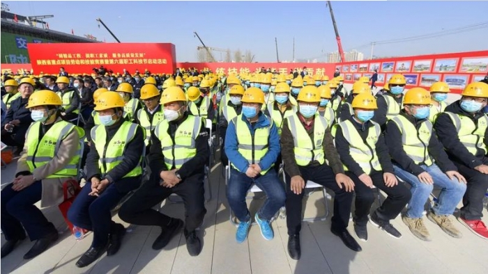 3月22日,陜西省“鑄精品工程,提職工素質(zhì),服務(wù)高質(zhì)量發(fā)展”重點(diǎn)項(xiàng)目勞動(dòng)和技能競(jìng)賽暨陜西省第六屆職工科技節(jié)啟動(dòng)活動(dòng)在陜西建工承建的西安火車站北廣場(chǎng)項(xiàng)目工地舉行。