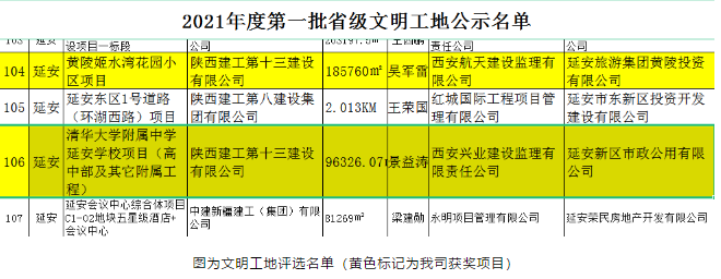 2021年度第一批省級文明工地評選結(jié)果