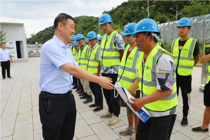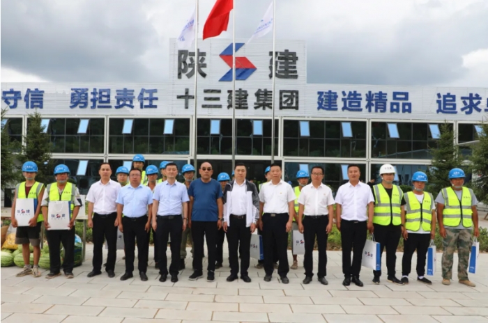 7月20日,陜建集團(tuán)企業(yè)發(fā)展部部長(zhǎng)齊偉紅,后勤事務(wù)管理中心副主任張棟一行來(lái)到集團(tuán)寶塔區(qū)水系連通及農(nóng)村水系綜合整治試點(diǎn)項(xiàng)目開(kāi)展“夏送清涼”慰問(wèn)活動(dòng),集團(tuán)副總經(jīng)理鐘卓寶、張?chǎng)蝹ヅ阃?/span>