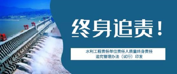 為加強水利工程質(zhì)量管理,強化質(zhì)量終身責(zé)任,提高質(zhì)量責(zé)任意識,保證水利工程建設(shè)質(zhì)量,水利部組織編制了《水利工程責(zé)任單位責(zé)任人質(zhì)量終身責(zé)任追究管理辦法(試行)》(以下簡稱《辦法》),強調(diào)水利工程質(zhì)量終身責(zé)任管理實行書面承諾和竣工后永久性標識等制度。