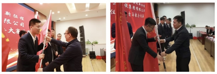 在“師帶徒”活動啟動儀式上,來自集團機關(guān)部門、各基層單位的13對師徒進行結(jié)對,舉行了拜師儀式,并簽訂了“師帶徒”協(xié)議書。師父代表鄧濤、湯勇,徒弟代表張漢武、李竹鳳分別進行表態(tài)發(fā)言。同時,儀式上,集團總工程師王弘起、副總經(jīng)理楊永宏分別為工人先鋒號、青年突擊隊授旗。