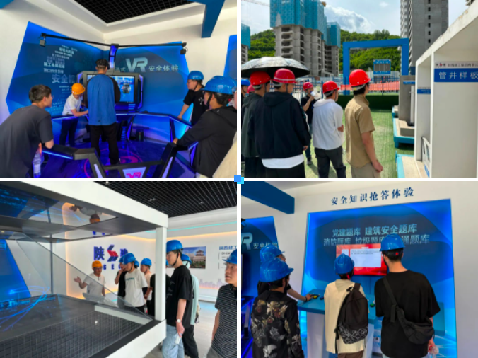 學(xué)生們參觀了智慧科技館,觀看了全息投影,體驗(yàn)了VR實(shí)景模擬,了解智慧工地平臺(tái)運(yùn)行情況等。在樣板展示區(qū),項(xiàng)目管理人員介紹了裝配式在項(xiàng)目的應(yīng)用情況,對(duì)疊合板、預(yù)制樓梯、預(yù)制陽臺(tái)的施工進(jìn)行了詳細(xì)介紹。同時(shí),部分學(xué)生還進(jìn)行了安全體驗(yàn)。