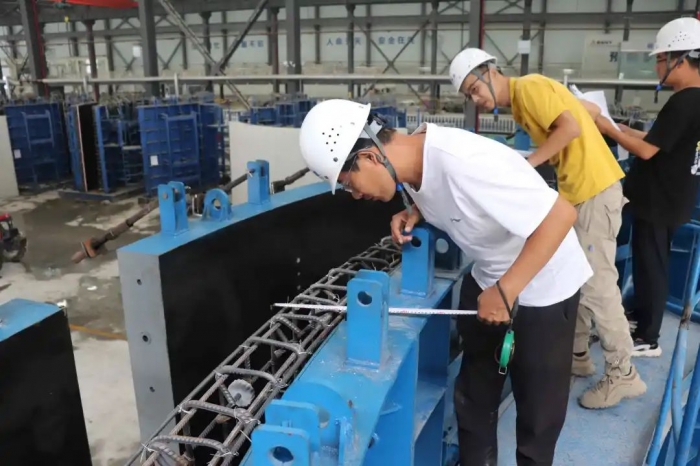 承接任務(wù)后,為確保管片順利澆筑,集團(tuán)新型建材公司統(tǒng)籌部署,科學(xué)組織,嚴(yán)格按照設(shè)計(jì)圖紙、技術(shù)生產(chǎn)規(guī)范要求,對(duì)現(xiàn)場管理人員、勞務(wù)隊(duì)伍進(jìn)行了詳細(xì)的技術(shù)交底,明確了操作規(guī)程;嚴(yán)格把控原材進(jìn)場關(guān),優(yōu)化混凝土配合比,保證管片成品質(zhì)量符合設(shè)計(jì)要求;加強(qiáng)協(xié)調(diào)管控,嚴(yán)格按照施工操作要求完成了模具安裝、鋼筋綁扎、塌落度檢測、混凝土振搗等工作。